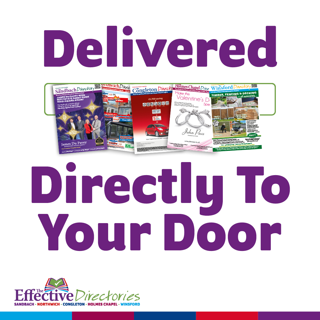 The Holmes Chapel Directory (established in October 2006), is one of five magazines, part of The Effective Directories magazine group. It is produced monthly and hand delivered directly through the letterboxes of 4,800 homes across this area. In addition, our magazines are also delivered every month to high street businesses, local libraries and other local information points.